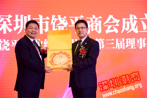 随后,深圳市饶平商会成立大会暨饶平商业经济促进会第三届理事会就职庆典盛大举行。潮州市委书记李水华、广东省政协原副主席李统书、深圳市人大常委会原常务副主任庄礼祥,潮州市委副书记、市长卢淳杰等深圳市、潮州市的相关领导及海内外嘉宾齐聚一堂,共谋发展。