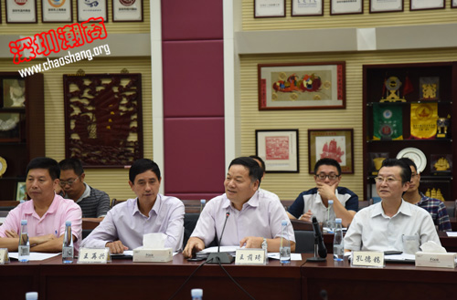 党委联合举办的“第三次潮汕四市非公党建工作联席会议”,在深圳市汕头商会十四楼会议厅隆重举行。深圳市非公党委副书记王荫琦,深圳市非公党委办公室副主任袁兴,南山区统战部副部长、两新工委常务副主席吴燕珊,龙岗区委两新组织工委副书记、纪工委书记傅承钧,福田区工商联(总商会)副主席李喜亮,我会名誉会长王再兴,创会会长吴开松,会长黄榕城,驻会常务副会长黄育宏,副会长兼秘书长丁伟斌,深圳市汕头商会会长郑汉明应邀出席了会议。