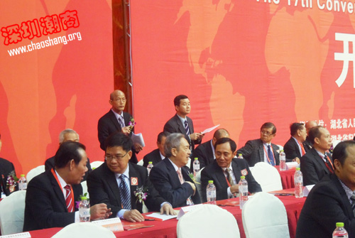 中央人民政府驻香港联络办副主任黄兰发,国务院侨办副主任谭天星,中国侨联副主席李卓彬、陈有庆,国务院港澳办副主任周波,国际潮团总会第十七届理事会主席陈少荣,国际潮团总会永远荣誉主席蔡东士,湖北省委副书记、省长王国生,省委常委、统战部部长张岱梨,副省长甘荣坤,武汉市市长唐良智等出席开幕式。大会名誉主席、我会会长吴开松,我会执行会长黄榕城在主席台就座,李茂水、黄育宏等商会领导出席。