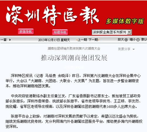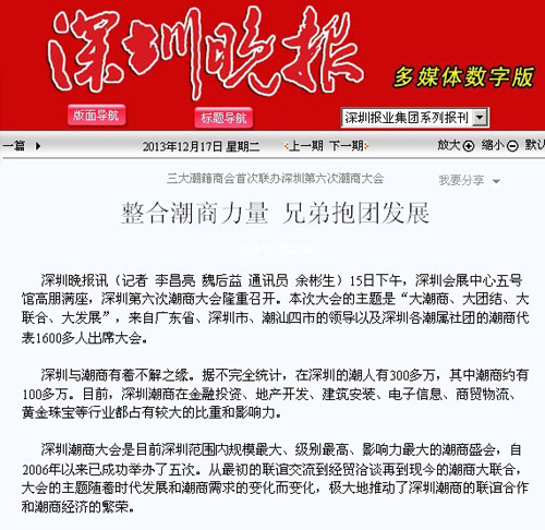 新闻来源:深圳潮商网 发布时间:2013年12月18日 我要分享