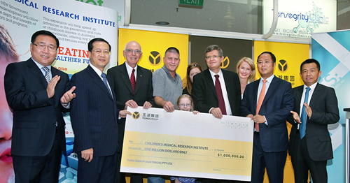 在2013“奉献日”庆祝活动当天,玉湖集团捐赠了100万澳元给澳大利亚儿童医疗研究所,资助他们在儿童抗癌领域开展研究,并将研究成果分享给中国合作的医疗机构,造福两国儿童。