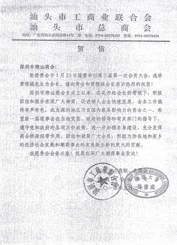 汕头市工商联贺信