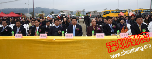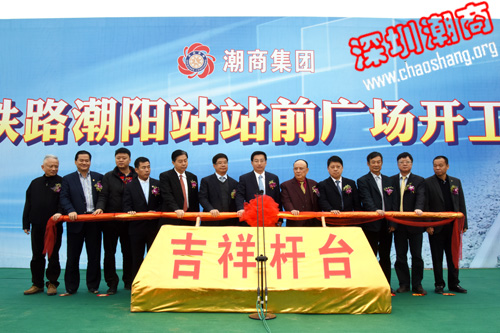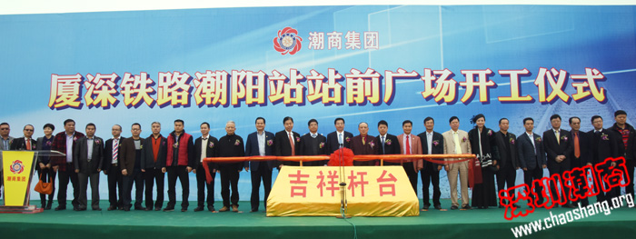 、潮商集团“双喜临门”——潮阳潮尚城奠基、厦深铁路潮阳站站前广场开工。潮阳区委书记、区人大常委会主任陈新造,潮阳区委副书记、人民政府区长林定亮,潮阳区委副书记陈邦津,以及潮阳区各套领导班子、各镇(街道)主要负责人、驻潮、区直局以上有关单位主要领导,谷饶镇、城南街道党政班子成员,项目所在村居“两委”干部等领导和嘉宾出席项目的仪式活动。