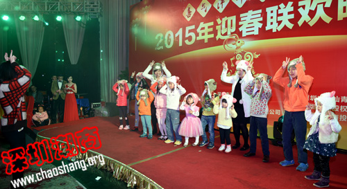 晚会的节目形式多样、精彩纷呈,有刚柔并济的歌伴舞《等待》、有激情四射的爵士舞《Hush》、有刚劲有力的中国功夫表演、有充满童真童趣的舞蹈大团拜《喜洋洋与灰太狼》、还有新潮欢快的潮商版《小苹果》。晚会高潮一轮接一轮,大家恭贺新春、其乐融融。