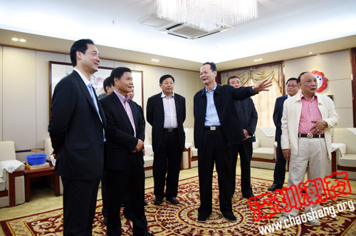 2015年2月28日上午,中共潮州市委书记李水华,市委常委、秘书长张帆,副秘书长、办公室主任佘楚雄,湘桥区委书记张剑峰、区长陈鹏,全国劳动模范、第九、十届全国人大代表陈伟忠一行莅临我会,与我会企业代表进行座谈。