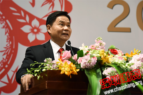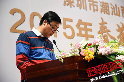 我会会长黄榕城在会上作工作报告。回顾过去,展望未来,黄榕城总结了自2013年4月1日执行会长驻会办公以来,商会各方面会务工作所取得的成果,并提出2015年会务发展的新十六字方针——稳中思进、顺势而为、巩固阵地、寻求发展。他表示,商会将力争在会员服务、发展潮商队伍、品牌推广、公益慈善、大型活动、对外联络、服务商会平台企业、商会领导班子和团队建设方面再创佳绩。