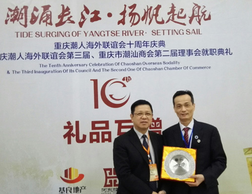 2016年1月16日,重庆潮人海外联谊会成立十周年庆典暨潮联会第三届、潮商会第二届理事会就职典礼在重庆悦来国际会展中心隆重举行。全国人大常委会副委员长蒋正华、重庆及潮汕两地党政领导、国外潮人社团及国内各省市友好商协会参加了本次活动。我会副会长兼秘书长丁伟斌等应邀出席了庆典仪式。