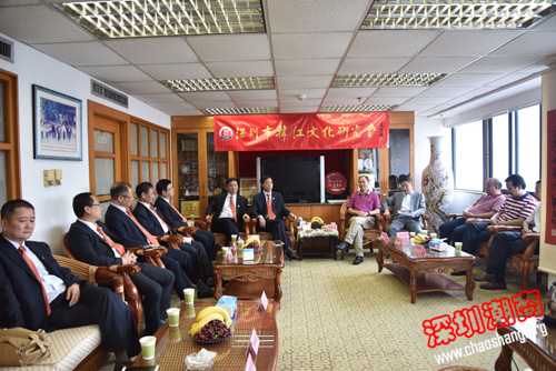 商会走访团首先来到深圳市韩江文化研究会。深圳市韩江文化研究会会长林振芳,永远名誉会长吴树君等接待了走访团一行。
