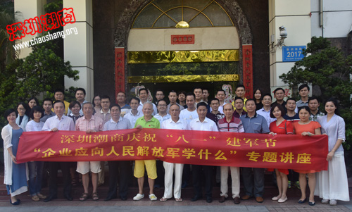 “八一”建军节即将来临之际,为弘扬解放军团结英勇、不畏牺牲的崇高精神及艰苦奋斗、果断干练的优良作风,2016年7月28日下午,由下载安装 、深圳市潮汕青年商会、深圳市普宁商会联合主办的“企业应向人民解放军学什么”专题讲座在东方明珠科技大厦3楼举行,近百名企业家以及商会工作人员参加了会议。下载安装 创会会长吴开松,驻会会长黄育宏,名誉会长卓振波,党委书记邓东,常务副会长、普宁商会执行会长周南,副会长黄坚泰等出席讲座。