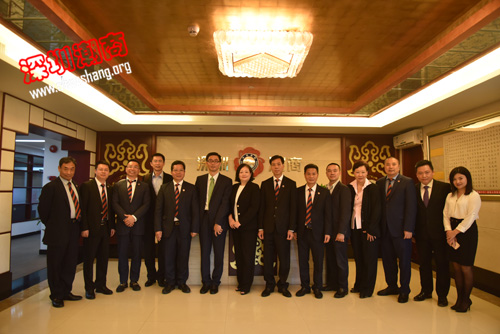 黄育宏、周南、许建洲、郭澍楠等对渣打银行主要业务进行深入了解,并就当前商会企业对银行业务的需求与渣打银行领导进行沟通探讨,在场渣打银行领导对相应的问题作出解答。会后,双方交换纪念品并合影留念。