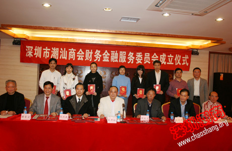 会议由会长助理何奕鹏先生主持,吴开松会长做了重要讲话;常务副会长黄育宏介绍商会财金委筹备情况及2010年上半年工作计划;副会长兼秘书长邓东宣读商会聘任财金委领导班子,顾问和委员的决定;建设银行深圳市分行副行长赵芝然副行长和深圳市国税局原副局长胡世文先生讲话。商会领导向财金委班子、顾问和委员颁发聘书。