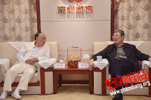 吴开松创会会长和吴木棠会长等领导对黄孟复主席莅临深圳第七次潮商大会并亲临商会指导,表示衷心的感谢,有了黄主席的大力支持,使庆典大会更添光彩。会长们汇报中介绍了深圳潮商的发展概况和商会的发展历程。吴开松说,十年来,商会从无到有、从小到大,影响力和凝聚力不断增强,很重要的一点在于敢于创新、抱团发展。十年来,商会打破传统模式,探索创新,通过抱团发展成立潮商投资管理公司、潮商小额贷款公司、潮商集团、潮商基金等实体机构,极大地调动了会员的参会积极性,增强了商会凝聚力。商会全心全意为会员服务,以服务赢得人心,使商会真正成为会员企业、潮人潮商的精神之家和坚强后盾,为企业发展保驾护航。