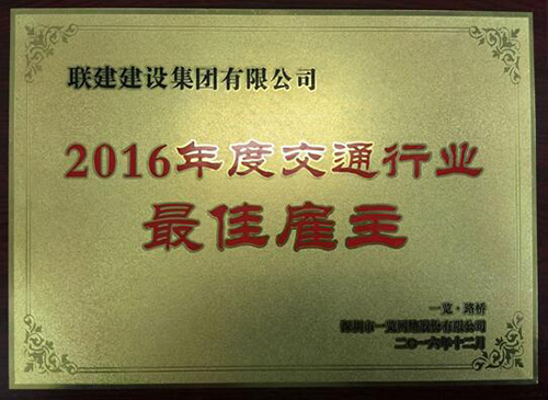 2017年1月12日,2016年度(第三届)行业最佳雇主颁奖盛典在深圳市五洲宾馆隆重举行。此次评选由国内最大的专业网站深圳市一览网络股份有限公司主办,联建建设集团荣获“2016年度交通行业最佳雇主”殊荣。
