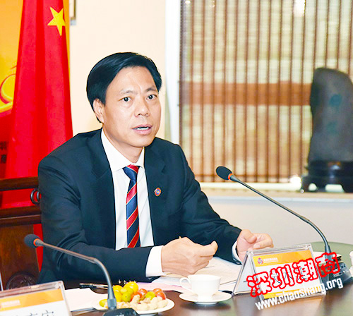 副监事长、广东省潮商公益基金会理事长姚欣强汇报基金会的工作情况