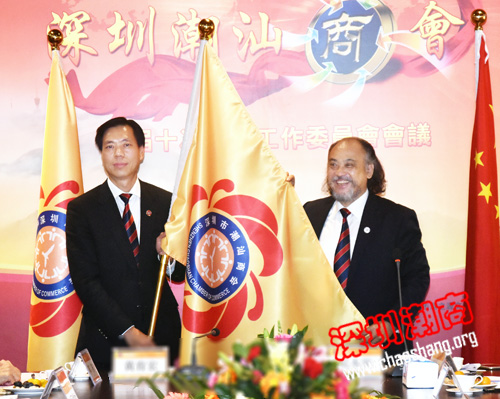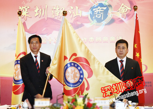 吴木棠会长(右)为周南常务副会长(左)授旗