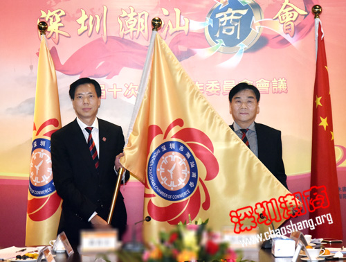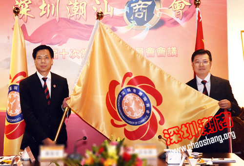 本次会议主要议程有:商会十个工委会工作条例(草案)说明,汇报上个月举行的春茗联谊会活动效应及费用情况,汇报秘书处部门负责人调整情况、会费收缴情况和新入会会员情况,汇报广东省潮商公益基金会工作情况,举行授会旗仪式等。