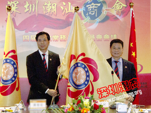 吴木棠会长(左)为李锐源常务副会长(右)授旗