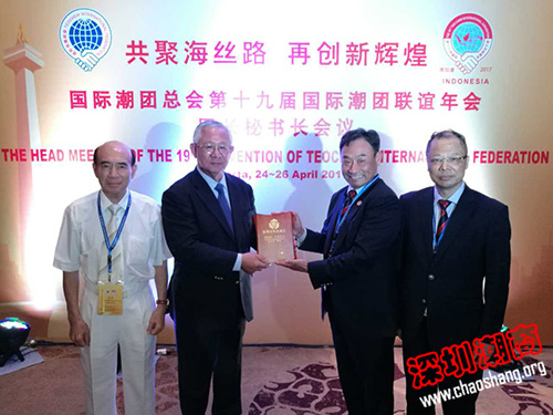 2017年4月25日上午,第十九届国际潮团联谊年会团长秘书长会议在印尼雅加达穆利亚酒店举行。来自中国、印尼、英国、法国、美国、加拿大、日本、泰国、新加坡、马来西亚、澳大利亚等国家及港澳台地区300余名全球潮团代表出席会议。