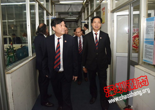 张俊龙董事长(前左)陪同吴木棠会长和常委参观金雅艺珠宝生产车间