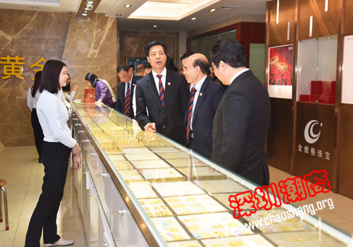 会前,吴木棠会长率常委会成员来到金雅艺珠宝公司参观学习,受到张俊龙董事长和公司同仁的热烈欢迎和热情接待。张董陪同大家参观了公司的生产车间和产品展厅,并简要介绍了公司的发展历程和发展情况。张董介绍,公司事业起步于家乡汕头,1999年移师深圳,2003年取得深圳第一家黄金经营许可执照。公司主营足金999‰、足金999.9‰、3D硬金、K金、铂金、纯银等珠宝首饰及贵金属工艺品,并有进出口贸易业务,旗下拥有数家优质加工厂,产品均采用国内、国外标准精加工。凭借领先的技术与工品质优势,公司在业界赢得了良好的声誉,在海内外市场受到广泛的信赖和推崇。据介绍,金雅艺珠宝公司每年销售额达数百亿元。