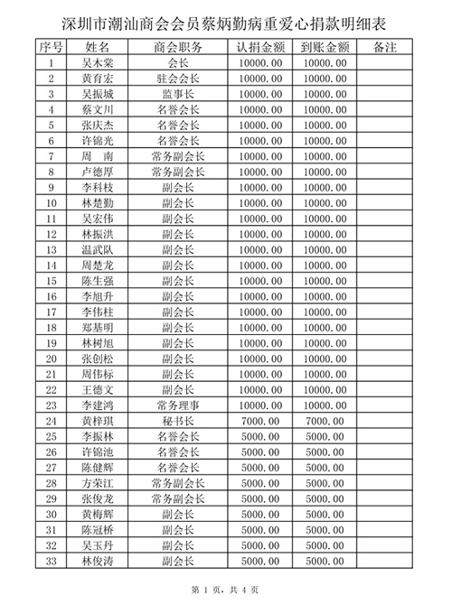 蔡炳勤先生的求助信息很快通过微信等方式进行发布,商会会员知道后都纷纷奉献爱心,在短短一天的线上线下捐款活动中,有一百多位商会会员参与捐款,总共筹得善款38.23万元。