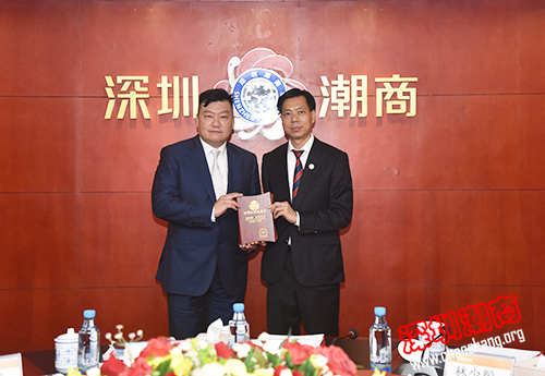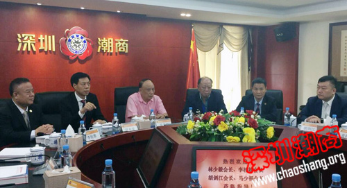 2017年5月21日上午,国际潮团总会永远荣誉主席、加拿大潮商会会长林少毅,国际潮青联合会会长、泰国华人青年商会会长李桂雄,香港潮州商会会长、国际潮青联合会执行会长胡剑江和深圳市新的社会阶层人士联合会会长马少福一行莅临下载安装 访问,与吴开松创会会长、吴木棠会长、黄育宏驻会会长等就潮商抓住“一带一路”战略机遇推进投资合作,以及创新商会发展模式、打造百年商会等话题进行了座谈交流。党委书记邓东,副会长兼秘书长黄梓琪,常委、副会长何奕鹏等参加座谈。