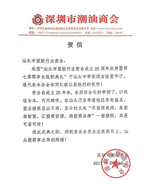 据悉,汕头市塑胶行业商会成立于1991年,是中国汕头市最早成立的行业性商会,也是粤东地区规模最大的塑料行业商会和华南地区具影响力的行业性商会之一。商会以“服务会员、发展经济、回馈社会”为宗旨、发挥中介、桥梁与纽带作用,沟通企业与政府的联系,促进企业的技术进步和经济的转型创新发展。商会汇聚了绝大部分实力雄厚的知名塑料企业,其中上市、准上市企业近10家,年产值近600亿元人民币,涵盖塑料原料流通、塑料制品加工、塑料机械装备制造、塑料技术与改性材料、塑料玩具与婴童用品等领域,形成完整的产业链并呈现出持续发展的良好态势,成为汕头工业的重要组成部分和支柱产业之一。