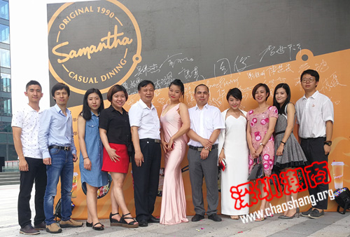 samantha萨蔓莎餐饮有限公司开业剪彩仪式合影。右四为周南常务副会长,右五为吴伟杰常务理事