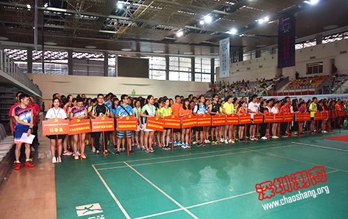 王荫琦书记郑重宣布深圳市非公党委庆祝建党96 周年“党建杯”羽毛球邀请赛开幕。