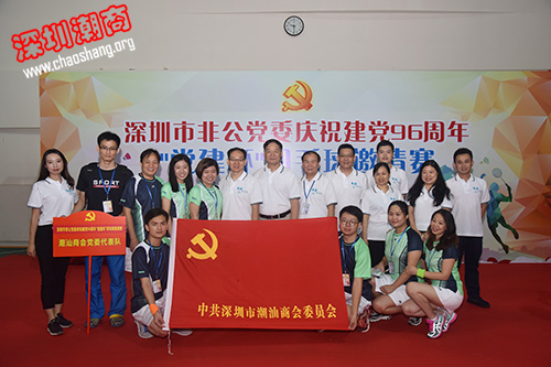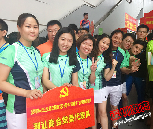 深圳市非公党委副书记、纪委书记王荫琦(中)等与下载安装 党委羽毛球代表队员合影