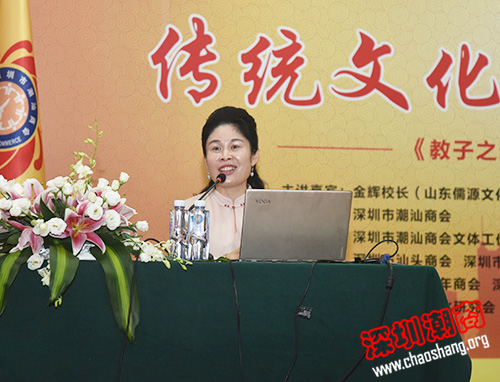山东儒源文化集团创始人、孔子礼仪文化学校校长金辉女士讲课