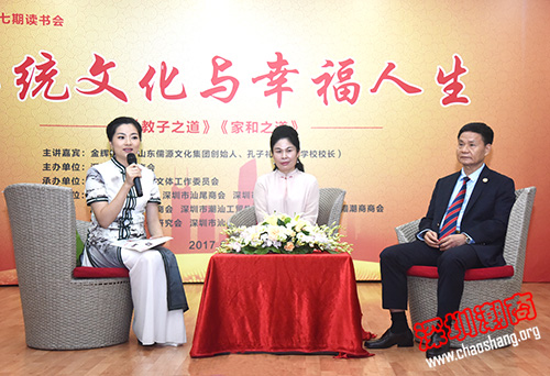 2017年6月24日,由下载安装 主办、下载安装 文体工作委员会承办,深圳市汕头商会、深圳市汕尾商会、深圳市揭阳商会、深圳市潮汕青年商会、深圳市潮汕工贸物流行业协会、深圳市巾帼潮商商会、深圳市潮汕文化研究会、深圳市汕头澄海商会协办的深圳潮商第七期读书会之“传统文化与幸福人生”主题讲座在市妇儿大厦举行。讲座分两场举行,上午主题为“教子之道”、下午主题为“家和之道”。山东儒源文化集团创始人、孔子礼仪文化学校校长金辉女士以极富魅力的演讲生动解析了当下应如何学习和运用传统文化智慧培养德才兼备的优秀孩子、营造幸福和谐的家庭。