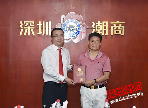 座谈会结束后,黄育宏驻会会长为新入会会员颁发牌匾及会员证。