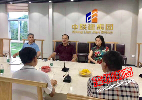 黄育宏驻会会长(左二)一行在中联建集团座谈交流