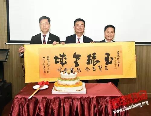 会议各项议程结束后,还举行了一个生日庆祝会,庆祝吴振城监事长生日。吴木棠会长向吴振城监事长送上献花、礼物和祝福,工作人员推出生日蛋糕,全体与会成员齐唱生日歌,共同祝愿吴振城监事长生日快乐、身体健康、万事如意。吴振城监事长非常开心地收下了大家的祝福,并感谢商会秘书处的精心安排。
