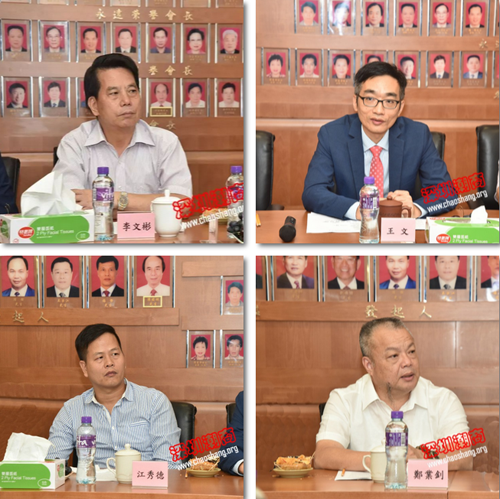 香港广东汕尾市同乡总会常务副会长李文彬(左上)、江秀德(左下),副会长郑业剑(右下),秘书长王文(右上)