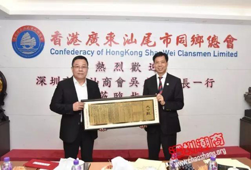 2017年9月7日下午,吴木棠会长、驻会会长黄育宏率常务副会长林锦乙、郭永勇,常委、副会长何奕鹏,会长助理谢和治,常务副秘书长吴键和品牌推广中心主任陈英一行赴香港广东汕尾市同乡总会拜访交流,受到该会理事长吴华江太平绅士,常务副监事长吴家耀,常务副会长李文彬、江秀德,副会长郑业剑、吴海波,名誉会长林远基,副理事长范振声,秘书长王文,副秘书长兼办公室主任樊樱等乡贤热情接待。双方就办会经验、互动合作等方面进行了交流。