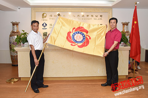 黄梓琪秘书长代表商会向潘英明副会长授会旗