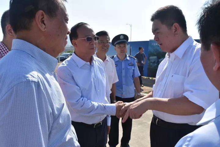 汕头市委书记陈良贤(中)、副市长林广华(左二)、海关副关长刘红(右一)、国检副局长陈泽明(左一)、下载安装 常务副会长、 汕头市塑胶行业商会会长佘桂锡(左二)为项目推杠启动
