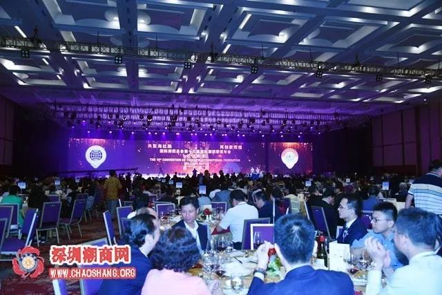 当晚7时,第十九届国际潮团联谊年会举行了盛大隆重的欢迎晚宴,整个宴会大厅人声鼎沸,座无虚席。来自全球 50 多个国家和地区的1760位潮团嘉宾共襄盛会,相聚晚宴,畅叙乡谊。