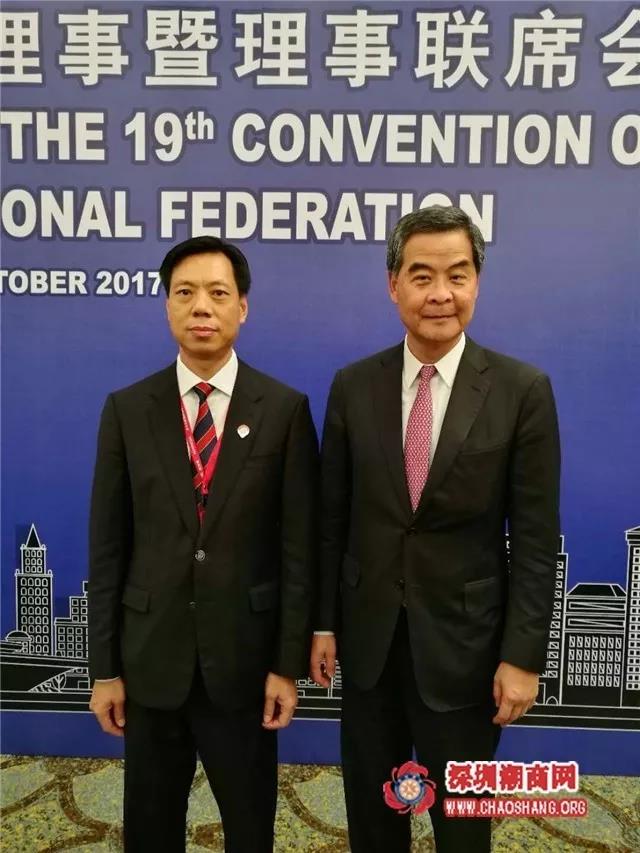 梁振英对大会的召开表示热烈祝贺,并高度赞扬了潮籍侨胞艰苦奋斗、诚信仗义、敢于拼搏等优秀品质。希望国际潮团总会广泛团结世界各地的潮籍乡亲,促进侨胞居住国经济发展,华社繁荣,同时发挥海外潮商的资金和智力优势,积极投身中国“一带一路”建设项目,共创双赢!