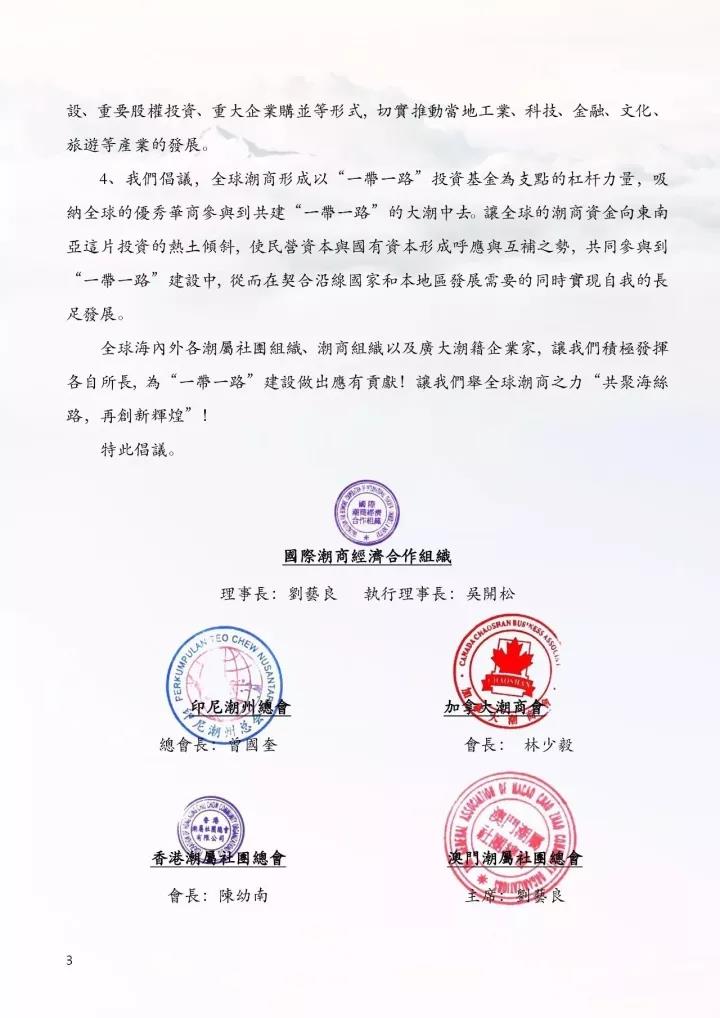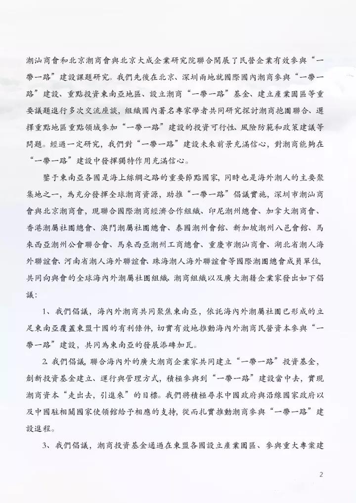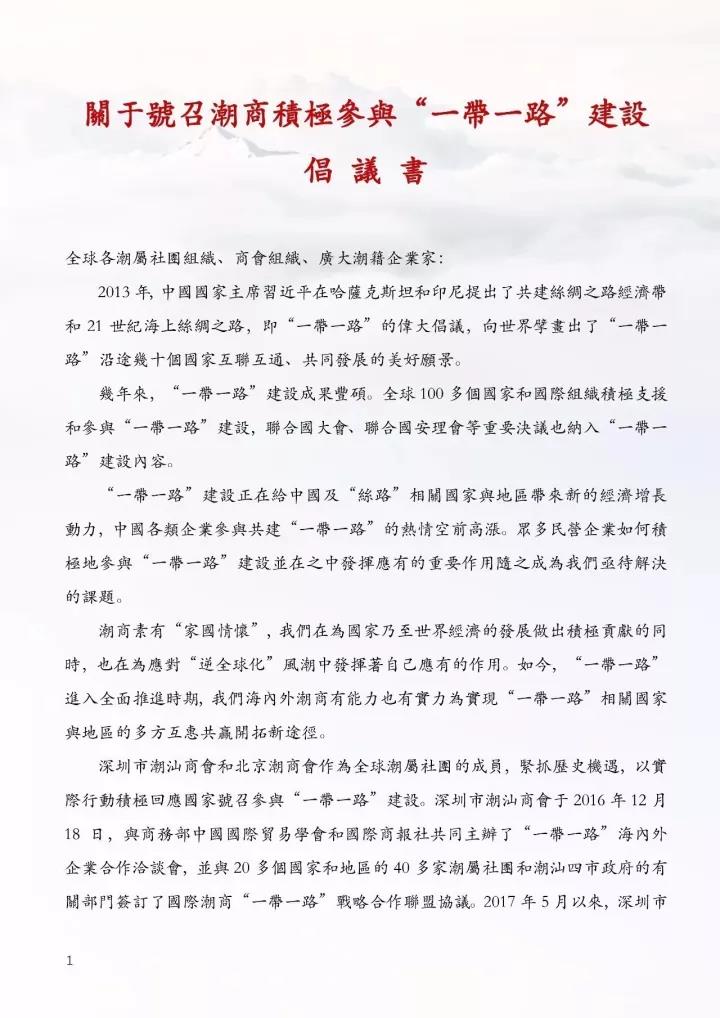 《关于号召潮商积极参与“一带一路”建设倡议书》