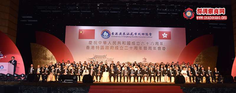 2017年10月9日晚,香港广东汕尾市同乡总会庆祝中华人民共和国成立68周年、香港特区政府成立20周年暨周年会庆,在香港会展中心隆重举行。中联办副主任何靖,全国政协常委、香港广东社团总会永远荣誉主席陈永棋,中联办社工部部长杨茂、社联部部长李文、港岛工作部部长吴仰伟、新界工作部部长刘林,民政事务局副局长陈积志,汕尾市政协主席郑佳等莅临主礼,该会会长龚俊龙、理事长吴华江、监事长林诗文、总监陈文清等出席典礼。大会筵开逾百席,超过1,000乡贤好友济济一堂,场面盛大,气氛热烈。