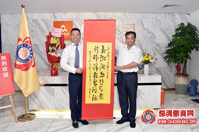 走访期间,黄梓琪秘书长代表商会为郭澍楠副会长赠送一幅书法作品作为生日贺礼,内容是:“嘉澍润物题春景,珍楠泽霖聚鸿源”。