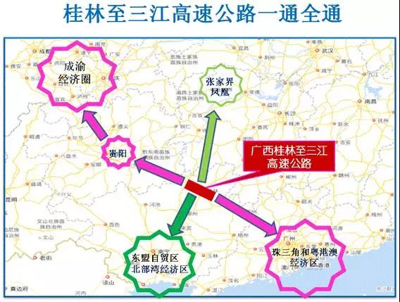 该项目连接贵州省东南部、湖南省西部以及广西东北部等贫困地区,项目建成后将成为这些地区与珠江三角洲、粤港澳地区和东盟联系的纽带,将极大地带动沿线地区旅游业、加工业、物流等产业的发展。广西作为连接西南、华南、中南以及东盟大市场的枢纽,将日益发挥重要作用。因此,本项目的建设对于进一步实施国家西部大开发战略,完善国家和广西高速公路网络,充分发挥广西作为西南出海大通道的作用,构建中国与东盟交通大框架,加快全面建设小康社会进程都具有十分重要的意义。