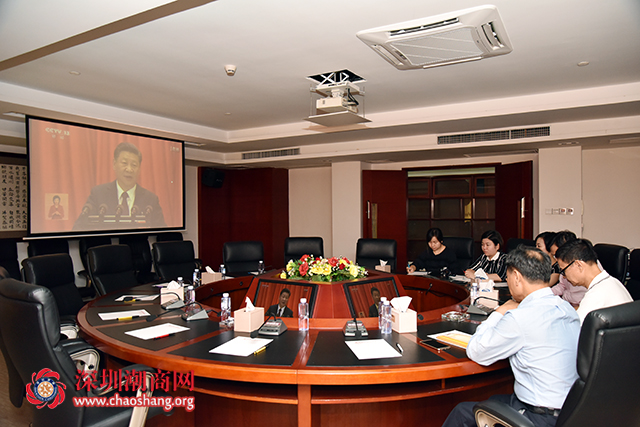 驻会会长黄育宏率领秘书处成员在商会会议室收看十九大开幕会全程实况直播