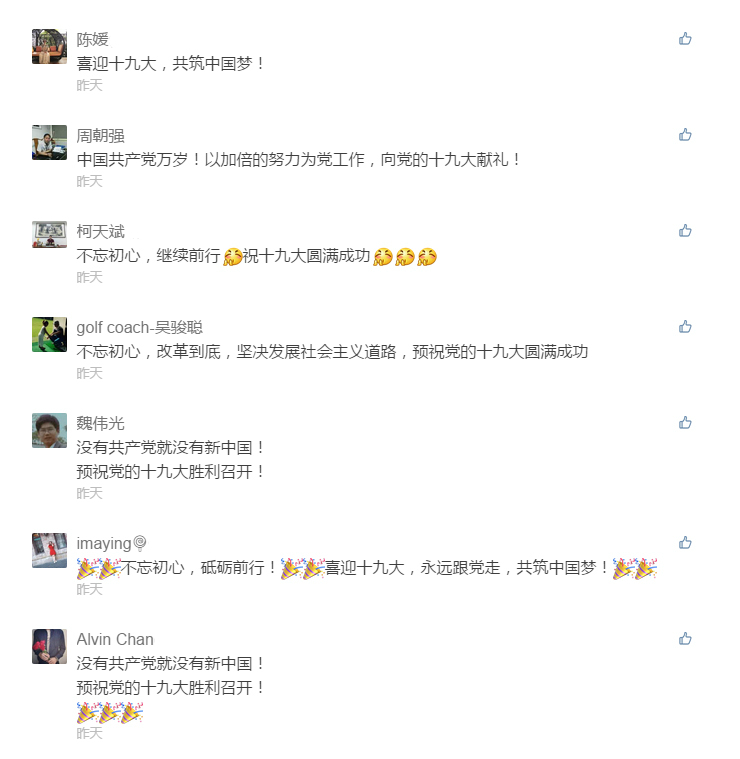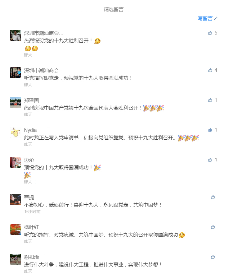 下载安装 于10月17日在微信公众号发出喜迎党的十九大推文后,得到了热烈响应,大家纷纷留言共同为党的十九大召开送上诚挚的祝福!
