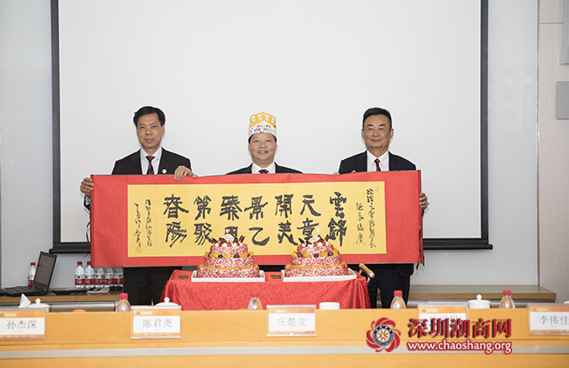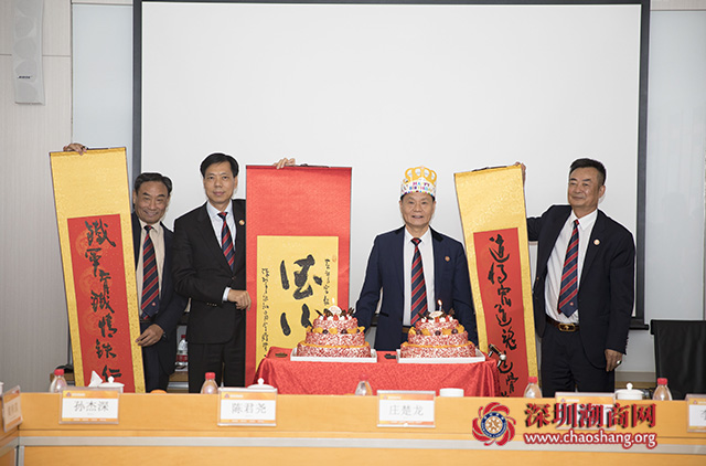 会议各项议程结束后,还举行了生日庆祝会,庆祝黄育宏驻会会长和林锦乙常务副会长生日。吴木棠会长、吴振城监事长向黄育宏驻会会长、林锦乙常务副会长送上献花、礼物和祝福,工作人员推出生日蛋糕,全体与会成员齐唱生日歌,共同祝愿黄育宏驻会会长、林锦乙常务副会长生日快乐、身体健康、万事如意。黄育宏驻会会长、林锦乙常务副会长对商会精心安排的生日十分感动和惊喜,表示商会是个温暖的大家庭,祝愿商会发展更辉煌。