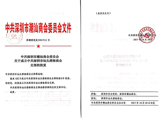 委员会关于成立中共深圳市汕头澄海商会支部的批复》