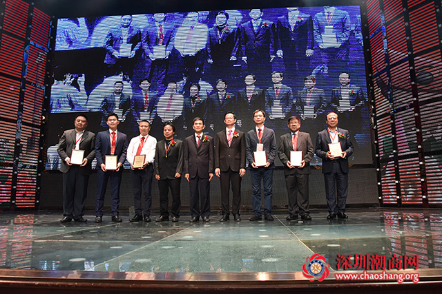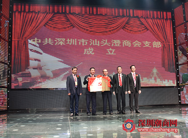 委员会为中共深圳市汕头澄海商会支部授牌,深圳市汕头澄海商会党支部书记、我会理事蔡淳林(左二)代表委员会接受颁牌